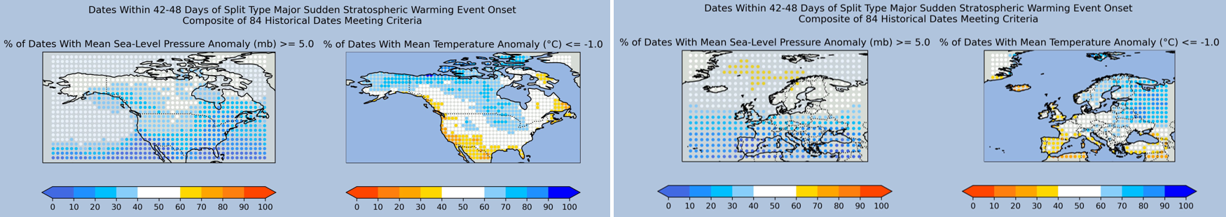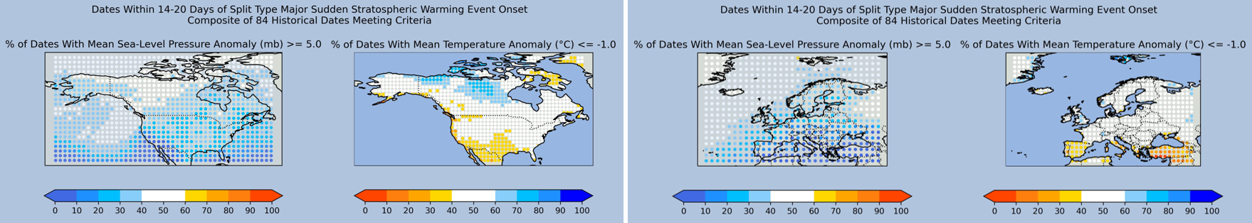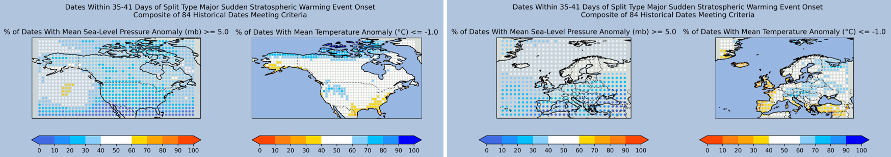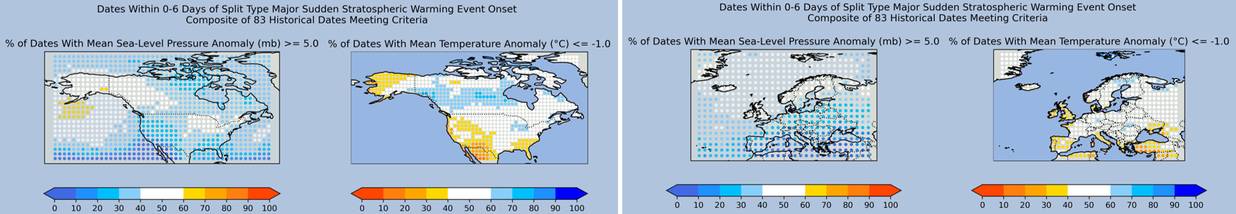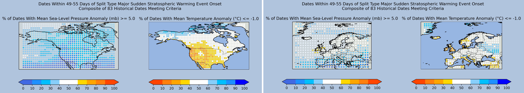 Overall, it’s best to think of these events as increasing the likelihood of cold weather in the mid-latitudes. Importantly, the distribution of that cold weather varies between them.